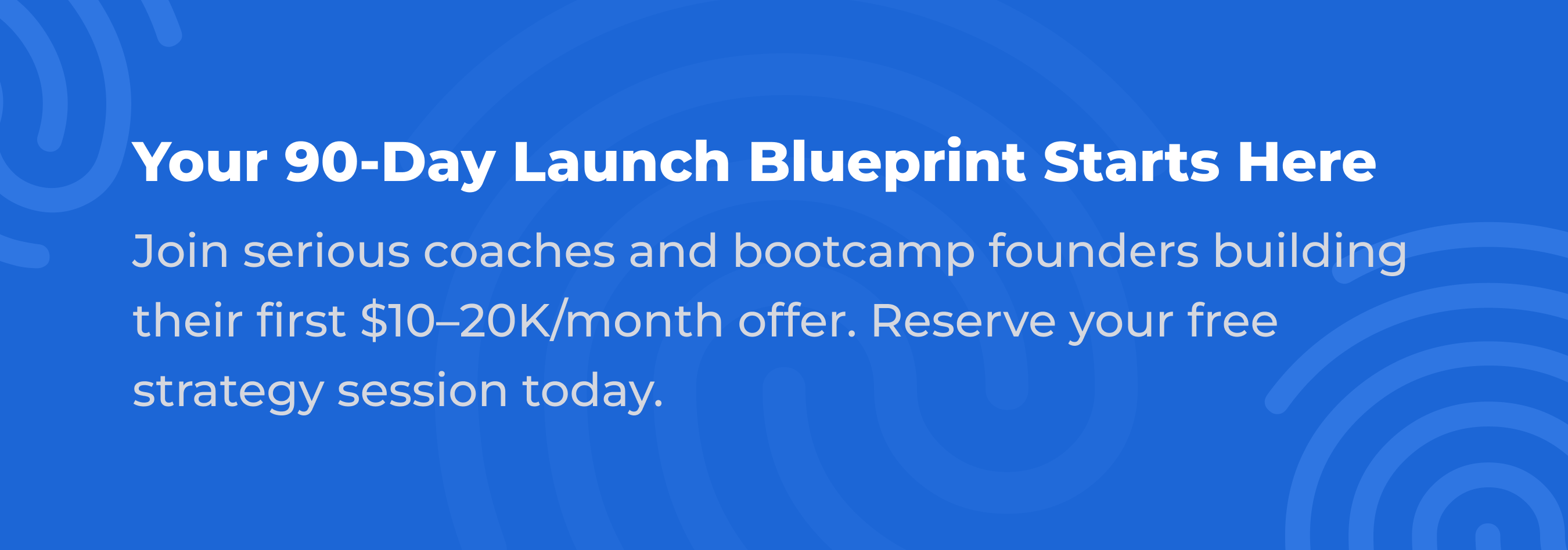 Join a free 1-on-1 90-Day Launch Session where we take your existing career skills, design a high-ticket coaching / bootcamp offer, and map the exact steps to enroll your first cohort (your first $10K+ in enrollments) — without quitting your job